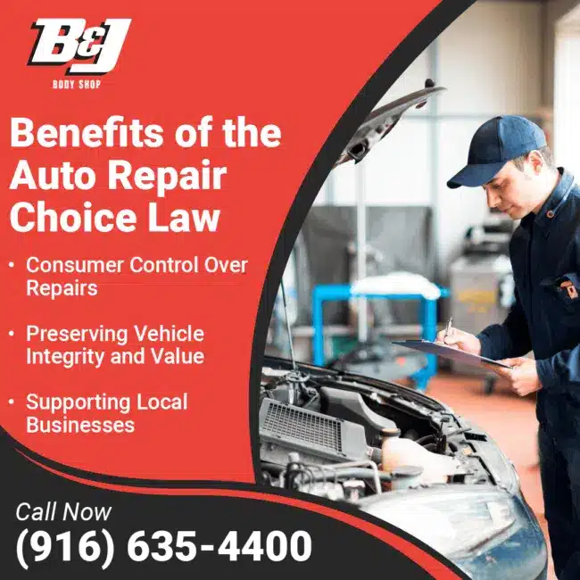 - Encouraging Small Business Competitiveness: This law allows independent, local auto body shops to compete on a level playing field with larger repair networks. By giving you the freedom to select the shop that meets your needs, small businesses like B&J Body Shop have the opportunity to showcase their expertise and craftsmanship, helping them thrive in a competitive market.