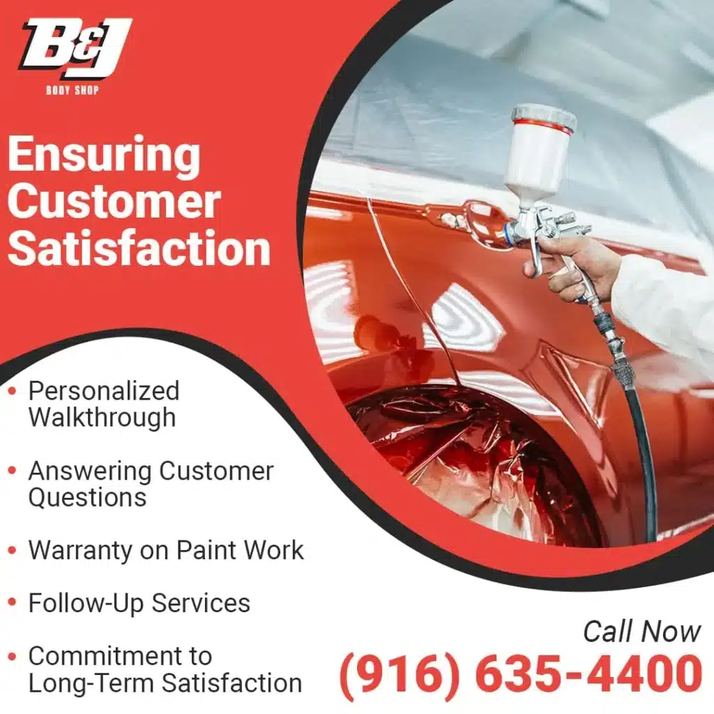 At B&J Body Shop, customer satisfaction is our top priority. Once the painting, polishing, and detailing are complete, we invite you to review the final results. We walk you through the entire paint job, showing you the flawless finish, perfect color match, and detailing work we have done. This final inspection with you allows us to ensure that every aspect of the job meets your expectations and fulfills your requirements. We value your feedback and won’t consider the job complete until you are fully satisfied with the results. Our skilled vehicle paint professionals take pride in delivering high-quality work, and we aim to ensure that you leave our shop with complete confidence in the quality of your car’s new look. Whether you came in for a simple touch-up or a full auto painting service, we guarantee your approval and satisfaction.